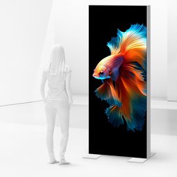 Rectangular, circular, cube – our tension frames and screens are flexible in size, shape and design. They are suitable for showrooms, lounges or reception areas as well as exhibitions and events. The corresponding profiles and base plates can be powder-coated in any colour to match your space or motif.